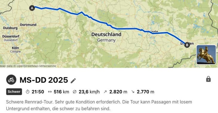 On May 28th 2025, I’ll ride from Münster to Dresden – aiming for 516 kilometers in under 24 hours.