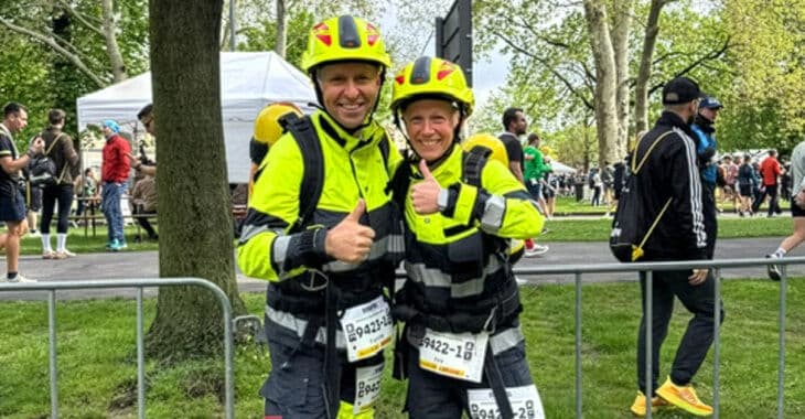 Laufen für brandverletzte Kinder - In Einsatzkleidung mit Atemschutz