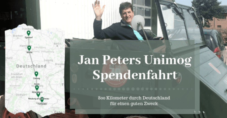 Ich möchte mit meinem 70 Jahre alten Unimog 800 Kilometer Landstraße quer durch Deutschland fahren und für jeden Kilometer Spenden für einen guten Zweck sammeln.