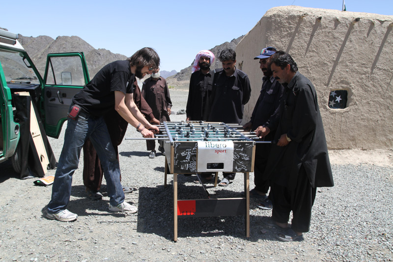 An einigen Orten hatten die Menschen noch nie in ihrem Leben einen Kicker gesehen, aber immer spielten sie begeistert mit. So wie die Soldaten an der Grenze von Pakistan zu Afghanistan: „Erst wirkten sie einschüchternd auf uns, wie sie da in der kargen Wüstenlandschaft standen mit ihren Kalaschnikows und den bärtigen finsteren Gesichtern. Aber sie waren begeistert wie die Kinder, als sie am Kicker die Stangen kurbelten“, erzählt Stefan.