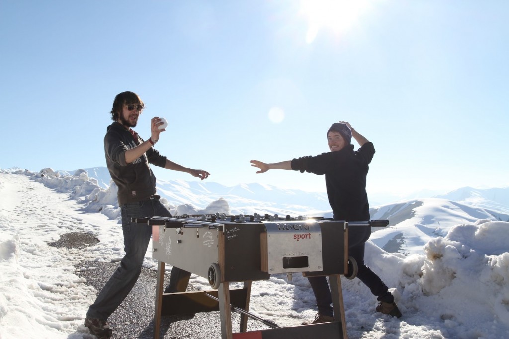 Gefährlich wurde es auch, als sie im Iran in die Nähe einer Atomanlage kamen. Ohne es zu wissen. Die beiden Deutschen mit ihrem Bulli waren der Polizei sofort suspekt und wurden in Gewahrsam genommen. „Das war wirklich bedrohlich, denn wir konnten ihnen zunächst nichts erklären, weil wir kein Persisch und sie weder Deutsch noch Englisch sprachen. Wir hatten keine Ahnung, was als nächstes passieren würde.“ Schließlich kam ein Dolmetscher, und die beiden konnten den Polizisten erklären, was sie machten: „Die Geschichte von zwei Studenten, die mit Bulli und Tischkicker von Deutschland nach Indien fuhren, war skurril genug. Sie konnten sich einfach nicht vorstellen, dass jemand, der spionieren will, sich so etwas ausdenken würde“, erzählt Stefan und lacht. Gekickert haben sie mit den Polizisten dann zwar nicht mehr, aber sie durften weiterfahren.