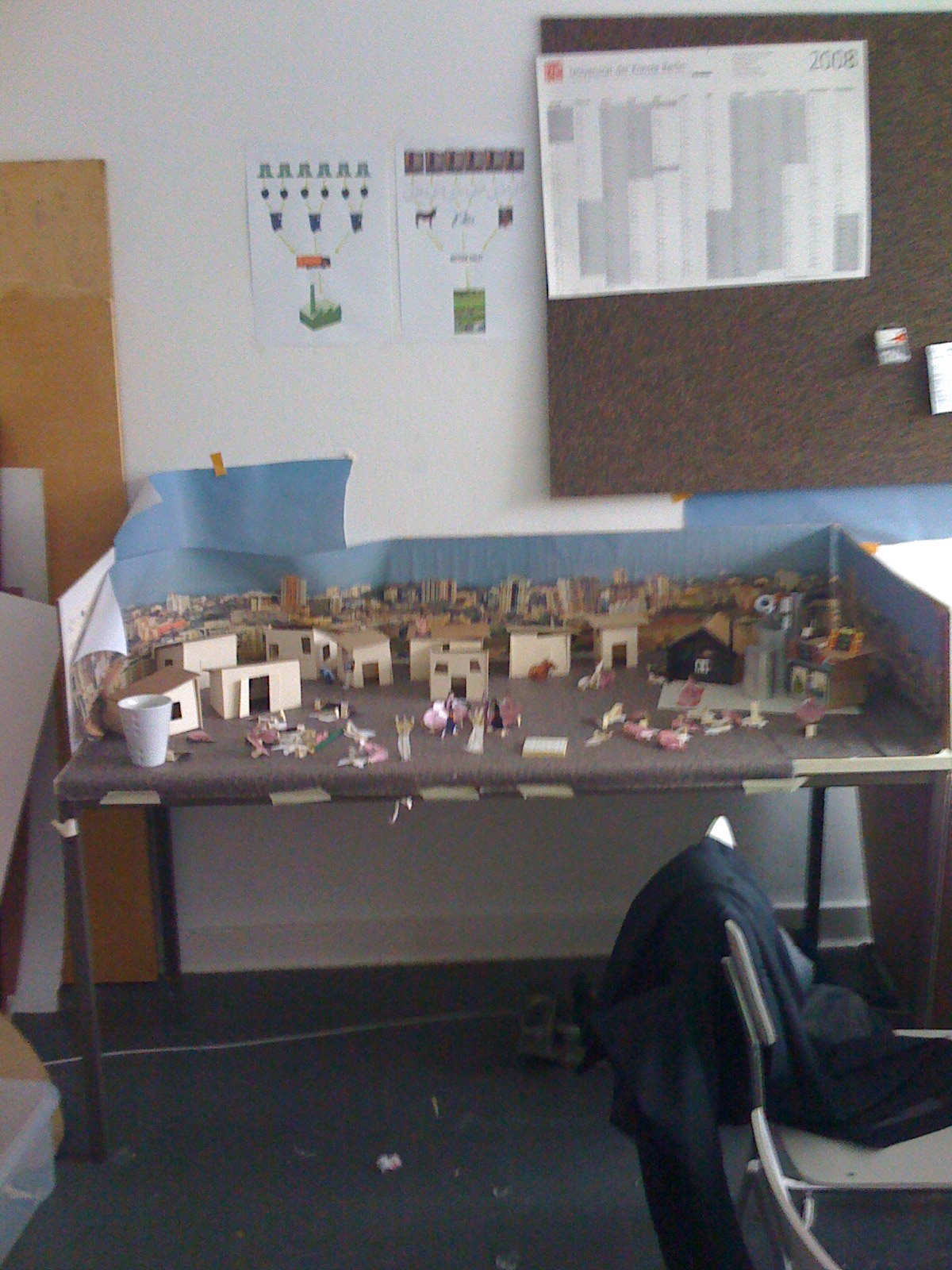 Diesmal wurde es schon ziemlich konkret: Zum einen haben Noa und Fionn einen tollen Film gemacht, der ihr Konzept eines dezentralen Toiletten-Systems veranschaulicht und der in einer von ihnen aufgebauten indischen Miniatur-Pappstadt spielt (s. oben). Die Inhalte der Hocktoiletten, die in Haushalten Verwendung finden sollen, werden in regelmäßigen Abständen zu einem zentralen “Mutterschiff” gebracht, in dem sie in Energie umgewandelt werden. In einem angegliederten Energie-Kiosk können sich die “Produzenten” z.B. Batterien für Handys oder Lampen aufladen lassen. (Den Film werden wir natürlich, sobald er ganz fertig ist, hier posten).