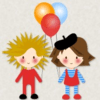 Drei fröhliche Personen heben die Hände, umgeben von Herzen und Konfetti.