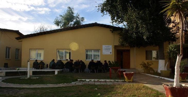 (Auf dem Bild siehst du das Schulgebäude in Albanien.)