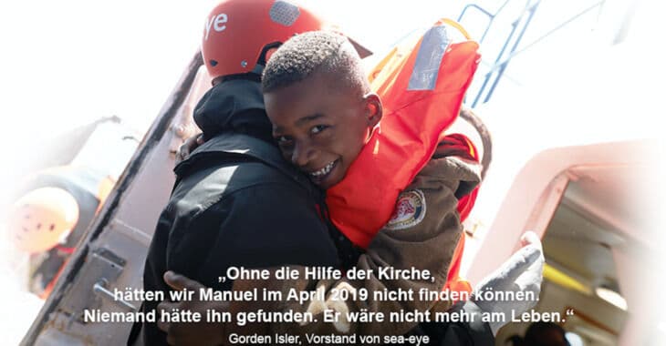 Sea-Eye e.V. und Sea-Watch e.V. erhielten in den vergangenen Jahren bedeutende Förderungen aus dem Raum der deutschen Kirchen. "Kirche-rettet.de" ist deshalb eine gemeinsame Initiative von Sea-Eye e.V. und Sea-Watch e.V. Wir wollen das Engagement der Kirchen sichtbar machen und einfach Danke sagen! Danke für Haltung, für Protest und für eure Spenden, aus den Diözesen, den Landeskirchen und den vielen Gemeinden, welche zu keinem Zeitpunkt zu früh kamen.