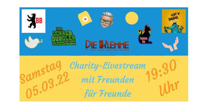 Gemeinsam gibt es daher einen Spendenstream am Samstag den 05.03.2022 ab 19:30 Uhr!