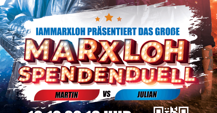 Warum nicht mal streamen und gleichzeitig was Gutes tun? Seid dabei, wenn am Samstag, den 10.12.2022 das erste große "Marxloh Spendenduell" live auf Twitch stattfindet! Martin und Julian duellieren sich den ganzen Abend in verschiedenen Disziplinen, es gibt sensationelle Livemusik und es werden Spenden für den Verein gesammelt. Also: Dick und fett im Kalender eintragen bitte und schauen könnt ihr das Ganze dann um 18 Uhr hier: www.twitch.tv/iammarxloh