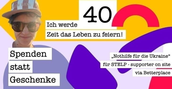 Dieses Jahr, zu meinem 40. Geburtstag habe ich einen ganz besonderen Wunsch: Spenden statt Geschenke! Dafür möchte ich die Arbeit von STELP unterstützen, da mir deren Arbeit schon lange sehr am Herzen liegt. Ich würde mich also mich riesig freuen, wenn ihr dieses Jahr das Projekt statt mich beschenkt. Jeder Beitrag hilft!