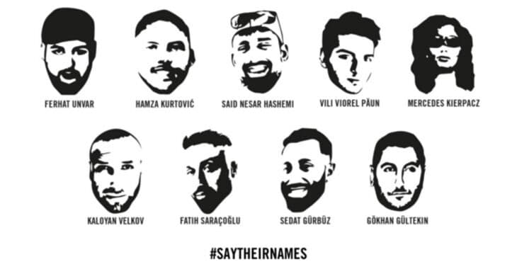 In Gedenken an Gökhan Gültekin, Sedat Gürbüz, Said Nesar Hashemi, Mercedes Kierpacz, Hamza Kurtović, Vili Viorel Păun, Fatih Saraçoğlu, Ferhat Unvar und Kaloyan Velkov und in Solidarität mit den Überlebenden und Hinterbliebenen des rechten Terroranschlags 2020 lesen wir am 11.2.2023, kurz vor dem dritten Jahrestag, in Hanau und im Livestream. Wir bitten euch in diesem Zuge um Spenden für die Initiative 19. Februar Hanau.