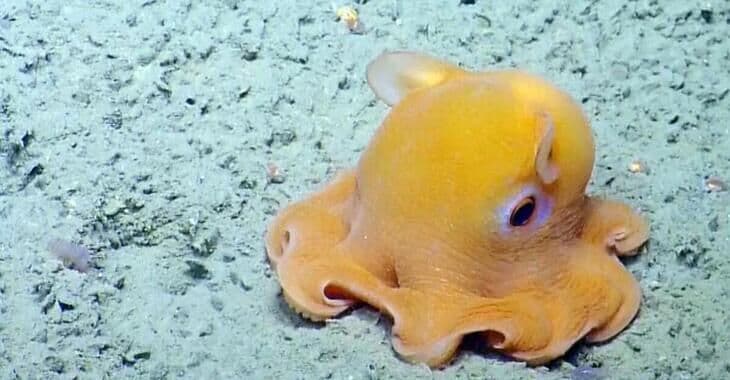 2. Dort leben hochspezialisierte Lebewesen, die z.B. mit dem 1000-fachen Druck der Atmosphäre oder Temperaturen zwischen 4 und 400 Grad Celisus umgehen können. Auch der süße Dumbo-Oktopus auf dem Bild (hier im Lichts eines AUVs) ist eine dieser Tierarten.