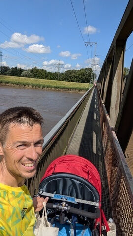 Ein kleines Abenteuer bestand dann noch im Überqueren einer Eisenbahnbrücke. Unter uns nur das löchrige Gitter, nicht ganz meins (man sieht mir das Unbehagen aber nicht an 🙄).