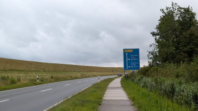 Eigentlich wollte ich diese Etappe erst "B70-Etappe" nennen - wäre aber zu wenig romantisch. Heute gab es praktisch keine Alternative, als die B70 von Leer nach Emden zu laufen. So oder so ähnlich sah das dann 16 km lang aus: