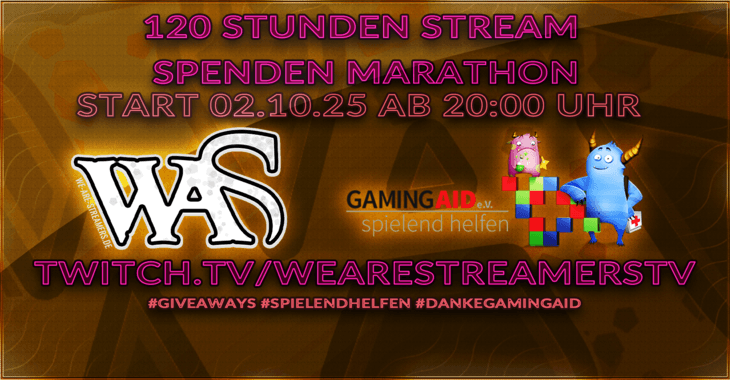 ☛ Das ganze wird am 02.10.2025 ab 18Uhr MEZ mit einer #WaSShow von @Degadius eröffnet, ein interview mit Christiane Gehrke von Gaming-Aid wird es am 06.10.25 14:00Uhr Uhr geben ( dort könnt ihr euch dann nochmals genauer über Gaming-Aid und unsere Aktion informieren )