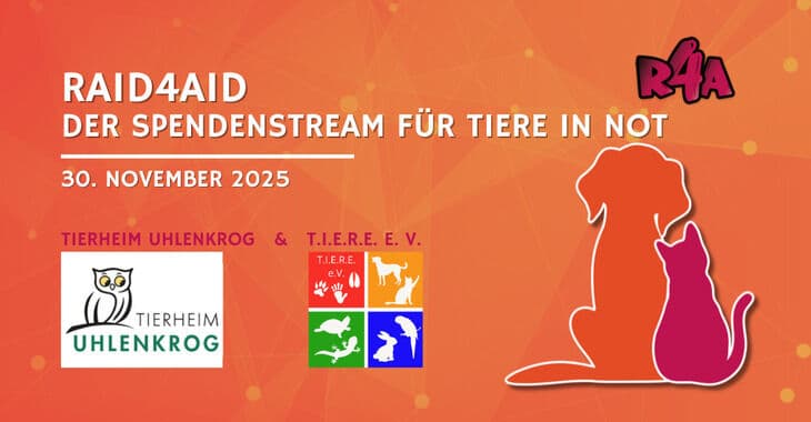In diesem Jahr sammelt Raid4Aid für zwei Einrichtungen, die Tieren in besonders schwierigen Lebenslagen eine neue Chance geben. Deine Spende unterstützt T.I.E.R.E. e. V. und das Tierheim Uhlenkrog in Kiel und kommt genau dort an, wo andere oft wegsehen.