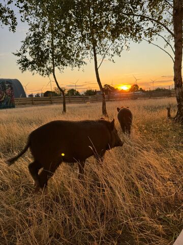 Der Verein besitzt die Erlaubnis vom Veterinäramt Lübben/ Landkreis Dahme Spreewald  10 Schweine im Außenbereich halten zu dürfen. Diese Erlaubnis muss regelmäßig neu beantragt werden und wurde in diesem Jahr wieder schriftlich bestätigt. Dazu sind strenge Vorschriften einzuhalten. Das Gelände muss doppelt umzäunt sein. Dies ist bei uns beim Bau von neuen Gehegen stets gegeben, da das komplette Gelände mit einem Wolfsschutzzaun umringt ist. Aber wenn man für die Schweine baut, muss es massiv sein und genau dieser massive Bau kostet Geld. Wir haben auch schon versucht für die beiden Tierpaten zu finden. Leider ist uns dies nicht gelungen. Es ist immer einfacher für junge, süße Tiere Paten zu finden. Alte Schweine zu verpaten, die nur noch als Weihnachtsbrsaten enden sollten, finden leider auch auf unseren Plattformen keinen einzigen Paten!