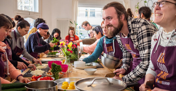 Wie? In erster Linie mit gemeinsamen Kochen und Begegnungen auf Augenhöhe. Wir schärfen bei Menschen mit und ohne Fluchterfahrung das Bewusstsein für Gestaltungsmöglichkeiten in der Gesellschaft, greifen beim Aufbau interkultureller Communities unter die Arme und schaffen belastbare, nachhaltige Netzwerke. Inzwischen umfasst das Netzwerk ca. 1.500 engagierte Menschen in über 40 Städten.
