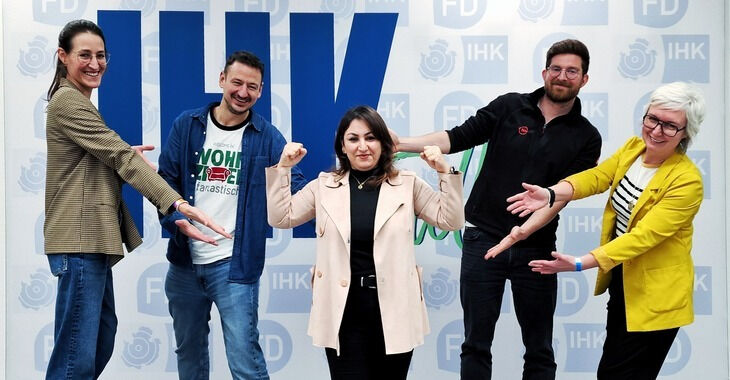 Gemeinsam kann es klappen (v.l.n.r.): Sarah Herrlich, Christoph Kümpel und Farzane Yaqin vom Verein Welcome In! Fulda, Luke Williams von den Wirtschaftsjunioren und Denise Otto von der Industrie- und Handelskammer Fulda.