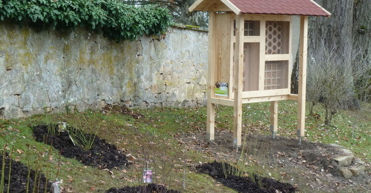Wildrosen, Wildbienenhotel und zwei Erläuterungstafeln erfolgreich gesetzt