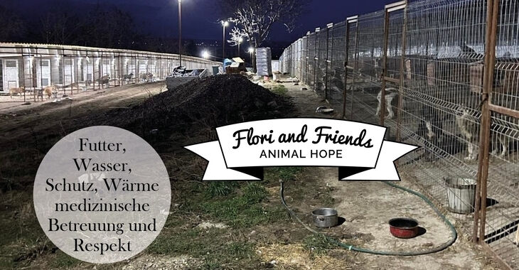 „Flori & Friends Animal Hope e.V.“ ist ein kleiner gemeinnütziger Verein (gegr. 2020) mit einer Handvoll Aktiven, die sich um unser Shelter in Galati / Ostrumänien kümmern, in dem in Not geratene Straßenhunde Zuflucht gefunden haben. Florentina Irimia (Flori), die das Shelter leitet, und ihre Helfer, können ohne Unterstützung unseres Vereins das Projekt nicht fortführen. Rund 400 Hunde, davon etwa 50 Welpen befinden sich derzeit in ihrer Obhut. Jeden Monat sind die Kosten für die Hunde zu stemmen, die wir über Patenschaften, Spenden und Mitgliedsbeiträge organisieren.