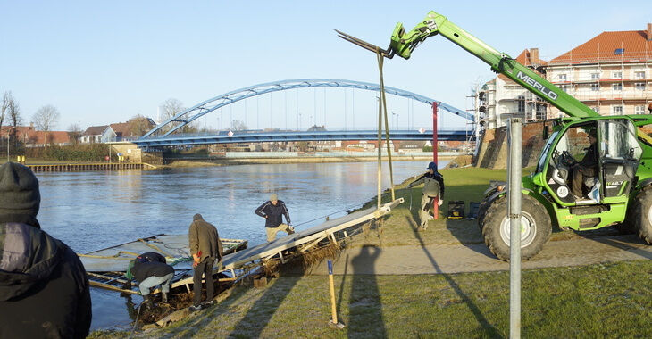 Die alte Steganlage konnte nach dem Winterhochwasser nur provisorisch repariert werden. Es wird eine neue Steganlage angeschafft sobald die Finanzierung gesichert ist.