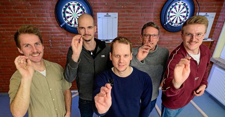 Die Gründungsmitglieder Felix Bade, Sven Bergman-Thies, Janos Böhme, Philipp Osterburg und Darwin Zander freuen sich seit Anfang 2024 über den Zuwachs interessierter Spieler*innen, die großes Interesse an der aufstrebenden Sportart Darts zeigen.