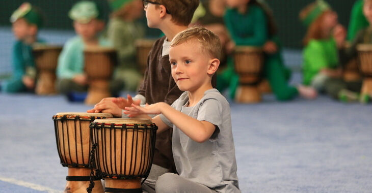 Im Laufe der Projektwoche wird aus der ganzen Kita eine trommelnde, tanzende und singende Gemeinschaft. Das pädagogisches Konzept verbindet Gemeinschaftserlebnisse für alle, altersspezifische Proben und ein Abschluss-Erlebnis mit Familie und Freunden der Kita.