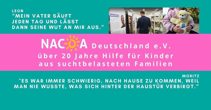 Seit 20 Jahren ist NACOA Deutschland e.V. unermüdlich im Einsatz, die Millionen Kinder suchtkranker Eltern in den Fokus der Öffentlichkeit zu rücken. Momentan leben knapp 3 rund 6 Millionen Erwachsene Millionen Kinder mit mindestens einem suchtkranken Elternteil unter einem Dach, sind mit suchtkranken Eltern aufgewachsen.