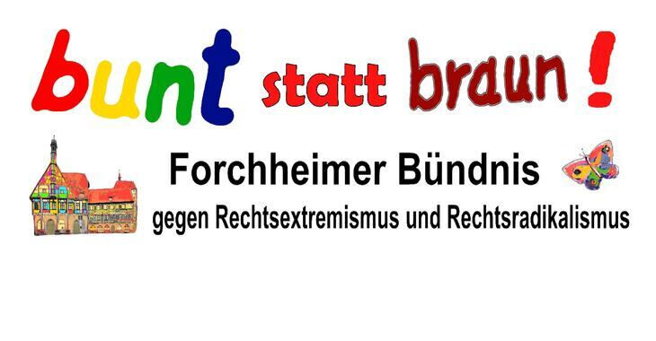 Bunt statt Braun e.V. ist ein zivilgesellschaftliches, parteiunabhängiges Bündnis gegen Rechtsextremismus und Rechtsradikalismus. Wir setzen uns für ein weltoffenes, demokratisches, tolerantes, bürgerfreundliches, lebendiges und buntes Forchheim ein – frei von Rassismus, Antisemitismus, Fremdenfeindlichkeit und Ausgrenzung.