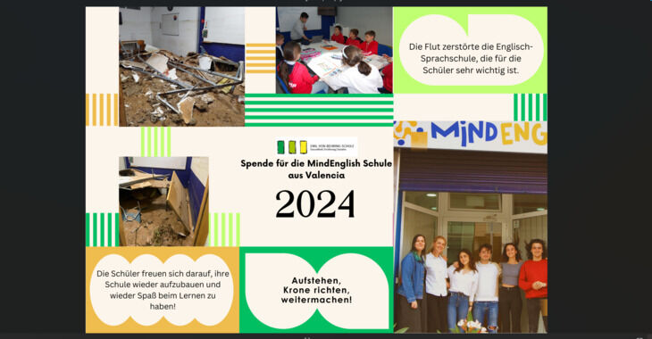 Liebe Spenderinnen und Spender, wir sind überwältigt von Ihrer großartigen Unterstützung und möchten uns von Herzen bedanken. Gemeinsam haben wir eine beeindruckende Spendensumme für die Flutopfer in Valencia gesammelt – ein Zeichen gelebter Solidarität, was uns tief berührt. Das Geld wird jetzt nach Valencia überwiesen und dort eingesetzt, um die Folgen der Flutkatastrophe zu bewältigen. Ihre Spenden geben nicht nur finanzielle Unterstützung, sondern auch Hoffnung und Zuversicht in einer sehr schwierigen Situation. Diese Aktion zeigt erneut, was unsere Schulgemeinschaft ausmacht: Zusammenhalt, Mitgefühl und echtes Engagement. Schule mit Herz zeigt Herz – dank Ihnen und Ihrer Bereitschaft zu helfen.