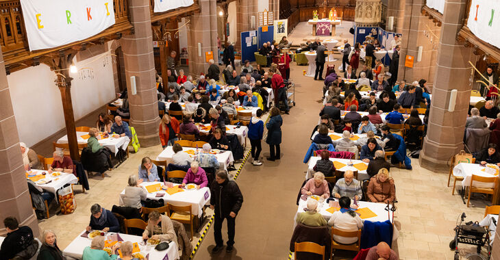 Immer im März öffnet die evangelische Stadtkirche in Calw für 10 Tage ihre Pforten, um in der Vesperkirche bis zu 700 Gästen täglich eine warme Mahlzeit anzubieten. Veranstaltet wird die Vesperkirche durch die evangelische Stadtgemeinde, die katholische Kirchengemeinde und die diakonische Einrichtung der Erlacher Höhe. Eingeladen sind alle, die an dieser Tischgemeinschaft teilhaben wollen, besonders aber diejenigen, bei denen eine warme Mahlzeit nicht selbstverständlich ist. Umrahmt wird die Veranstaltung durch ein kulturelles Begleitprogramm, durch Denkimpulse, Beratungsgespräche, seelsorgliche Angebote und z.B. die Möglichkeit eines kostenlosen Haarschnitts. Gäste, die mobil beeinträchtigt sind, können einen Fahrdienst in Anspruch nehmen. Organisiert und durchgeführt wird die Vesperkirche durch etwa 300 ehrenamtliche Helferinnen und Helfer, die die Gäste willkommen heißen und sich um ihr Wohl kümmern.