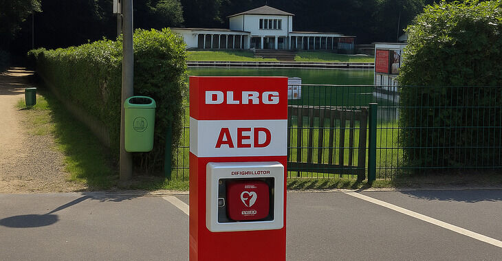 ein dauerhaftes Hinweisschild am Standort anbringen, sowie weitere anfallende Kosten für die Realisierung der AED-Station decken.Der Defibrillator steht seit dem 26.07.2025 nun rund um die Uhr öffentlich zur Verfügung und kann im Ernstfall Leben retten.