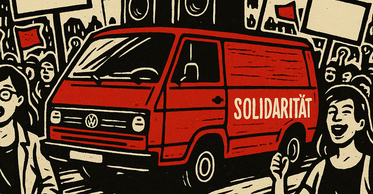 Unser Lauti ist ein VW LT 35, knappe 170.000 km gelaufen und noch echt gut in Schuss! Trotzdem waren einige Arbeiten nötig, um ihn über den TÜV zu bekommen. Ein neuer Auspuff, Traggelenke und ein neues Innenraumgebläse (ja das ist TÜV relevant - hat uns auch überrascht) waren fällig. Außerdem haben wir das Schweißgerät geschwungen und die schlimmsten Rostnester ausgeräuchert! Unsere Audio-Ausrüstung ist ehrlicherweise immer noch Frankensteins-Soundsystem. Wir haben uns von verschiedenen Menschen Equipment zusammengeliehen, um unsere ersten Einsätze zu bestreiten. Auf lange Sicht brauchen wir mehr eigene Technik. Einzelne Kabel und Ersatzteile konnten wir dank euch beschaffen und so die kommenden Einsätze sicherstellen! Außerdem konnten wir einen Generator kaufen, der uns mit ordentlich Power versorgt!Wir haben einen Platz in einer tollen Halle anmieten können, damit der Lautsprecherwagen nicht im Regen steht. Rost ist der Endgegner für ein altes Auto. Darum spart jeder Tag in der Halle am Ende etliche Reparaturen und verlängert die Lebenszeit. Wer für Solidarität einsteht gerät ins Fadenkreuz von Nazis. Steht der Lauti irgendwo herum, ist mit Schäden und Gefahren zu rechnen. In der Halle ist er sicher vor Beschädigung und Sabotage. Technik Auf- und Abbau dauerte für jede Demo zwei Stunden: Jetzt wo der Lauti allerdings voll Montiert in der Halle wohnen kann, ist er immer direkt einsatzbereit. Nur durch eure Spende ist die Miete für die kommenden Monate gesichert!