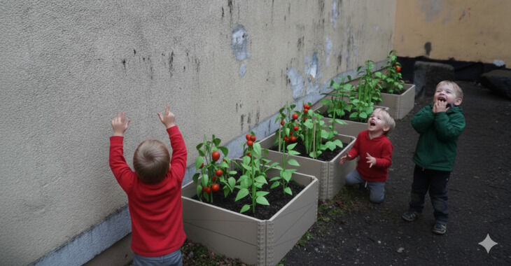 Weitermachen können wir dann, wenn die Wand repariert ist. Dafür prüft unsere Hausratversicherung gerade den Kostenvoranschlag der Handwerker. Wenn die Reparatur abgeschlossen ist, können wir die Hochbeete davor stellen. Dann kaufen wir erst Erde, damit die frisch in die Beete wandern kann. Wenn es so weit ist, geben wir Euch Bescheid. Wir halten Euch auf dem Laufenden!