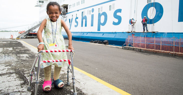 Mercy Ships entstand 1978 mit der Vision, den Ärmsten der Armen durch medizinische Hilfe an Bord von Hospitalschiffen Hoffnung erlebbar und Heilung erreichbar zu machen. Weil jeder Mensch wertvoll ist, möchte Mercy Ships sich Menschen annehmen, die durch Krankheit und Armut Ausgestoßene in ihrer Gesellschaft sind und werden. Durch kostenlosen Zugang zu lebensnotwendigen spezialchirurgischen Operationen können diese Menschen in ein gesundes und würdevolles Leben starten.