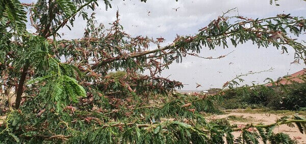 Heuschreckenplage: 2020 entwickelte sich eine der schlimmsten Ausbrüche der Heuschreckenplage seit Jahrzehnten. Milliarden Heuschrecken haben in Ostafrika, Süd- und Zentralasien und auf der Arabischen Halbinsel Ernten der Kleinbauern und -bäuerinnen und die Weiden der Viehzucht zerstört und somit die Lebensmittelversorgung von Millionen Menschen gefährdet. CARE-Helfer*innen haben in den betroffenen Ländern mit Lebensmitteln, Saatgut und Wasser den Kleinbauern geholfen. Zusätzlich unterstützten wir Regierungen und Bauern, die Heuschreckenschwärme frühzeitig zu lokalisieren, damit sie besser und schneller bekämpft werden konnten.
