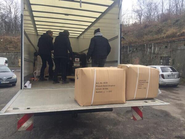 Stand heute, am 17. März, haben wir 61 Paletten (knapp 2 Sattelzüge) per Spedition auf den Weg gebracht. Weitere 10 Paletten warten auf ihre Abholung.