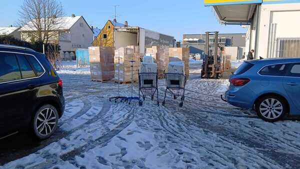 • 19. Februar: Start in Marktheidenfeld Der erste Teil der Ladung bestand aus ausgemusterten Krankenhausbetten des Kreiskrankenhauses Marktheidenfeld. Ein großes Dankeschön geht hierbei an den Bauhof Marktheidenfeld, der uns tatkräftig beim Verladen unterstützte.