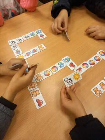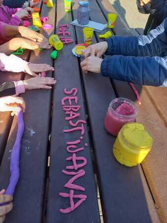 So wird gemalt, geknetet und gebastelt, was das mitgebrachte „Materiallager“ hergibt, und dabei ganz nebenbei ein paar Wörter Deutsch gelernt.
