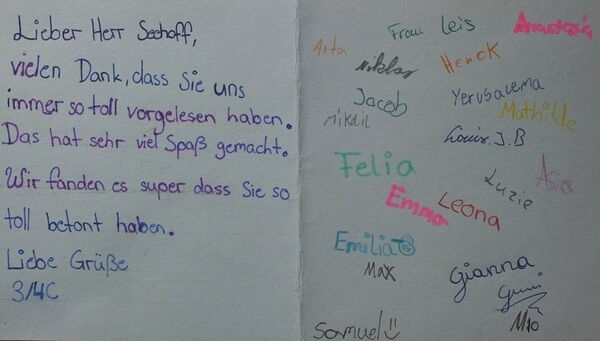 Uns hat fast der Zuckerschock getroffen, als wir von einem unserer Vorlesepaten die Bilder dieser liebevollen Karte bekommen haben – wie süß können Kinder bitte sein? 🥰