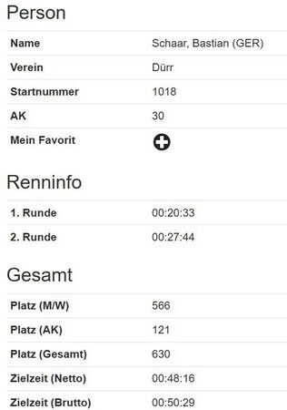 Nachfolgend die Zeiten mit dem erlaufenen Betrag, und der bitte zur Spende.