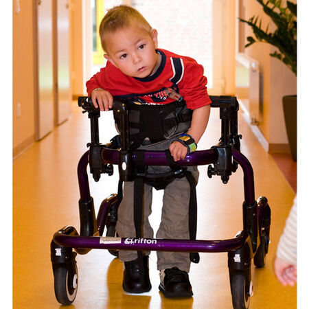 Für unsere Arbeit mit Kindern mit Zerebralparese brauchen wir folgende Geräte: Dynamischer Gehtrainer und vielseitige Posterior-Laufhilfe."