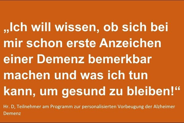 Herr D., Teilnehmer Nr. 15, nimmt an dem Programm zur personalisierten Vorbeugung der Alzheimer Demenz am ISPG Mannheim teil. Seine Teilnahme wurde durch Spenden an die Alzheimer Gesellschaft Rheinland-Pfalz e.V. ermöglicht.