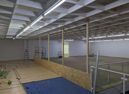 Aus der großen ehemaligen Verkaufsfläche machen wir so zwei separate Räume: