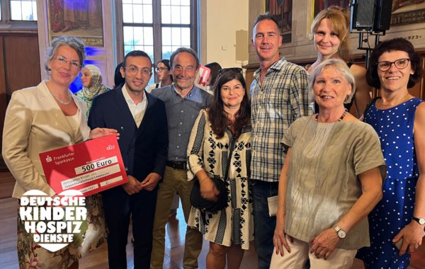 Bereits zum 16. Mal ehrte die Stadt Frankfurt am Main und die Stiftung der Frankfurter Sparkasse ehrenamtlich Tätige am 12. September 2023 mit dem Bürgerpreis im Kaisersaal des Römers. Auch Kerstin Lüttke, Leiterin des Ambulanten Kinder- und Jugendhospizdienstes Löwenzahn, erhielt von Mike Josef, Oberbürgermeister der Stadt Frankfurt am Main, die Urkunde und einen Scheck über 500 Euro als Anerkennung für engagierte Mitbürger:innen, die sich für eine Kultur des Miteinanders und die demokratischen Werte einsetzen. Insgesamt wurden 16 Bürgerinnen und Bürger und deren Vereine für vorbildliches ehrenamtliches Engagement mit Preisgeldern in Höhe von insgesamt 10.000 Euro ausgezeichnet. Als krönenden Abschluss des Abends überreichte spontan aus dem Herzen heraus Andreas Schreiber, Vorstandsmitglied des Pflegamt des St. Katharinen- und Weißfrauenstiftes, seinen Scheck über 1.000 Euro, den er selbst für sein Lebenswerk erhielt an Kerstin Lüttke und die Ehrenamtlichen des Frankfurter Standortes der Deutschen Kinderhospiz Dienste.
