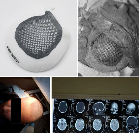 Ein anderer Patient wurde ebenfalls schwer am Kopf verletzt. Auch für ihn konnten Ingenieure und Chirurgen einen passenden Knochenersatz fertigen und erfolgreich einsetzen.