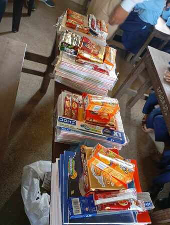 Auf diese Grundschule, die bis zur 5. Klasse führt, und für die wir 2023 in einer ersten Aktion einen Wasserspender für die Schüler und Ventilatoren für alle Klassenzimmer gespendet hatten, gehen die Kinder der ärmsten Familien der umliegenden Dörfer. Selbst die grundlegendsten Dinge wie Schreibhefte und Bleistifte können sich die armen Eltern kaum leisten.