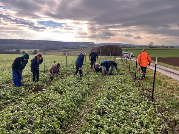 Ein Geschenk der besonderen Art konnte "Göttingen pflanzt!" am Nikolaustag uns allen schenken: Eine artenreiche neue Hecke , bestehend aus 540 Sträuchern wie Weissdorn und Pfaffenhütchen sowie 5 Obstbäumen und einem Speierling als Besonderheiten, die dem Schutz und der Nahrung vieler Vogel- und Tierarten dienen wird und dem wertvollen Acker Schutz vor Winderosion bietet.