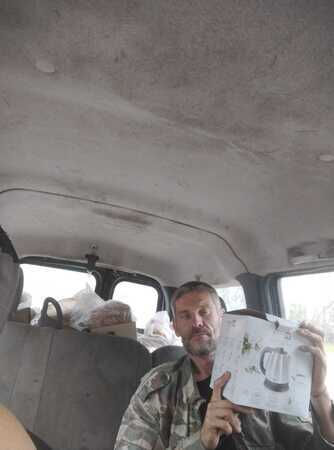 The stove Vitali uses is still boiling, but the water is coming out.It can have bad consequences. The new stove doesn't cost much, only 15 euros.And I've already bought it, Vitali is delighted. I was also able to buy the small stove.And a volunteer even installed the new safe socket for us.