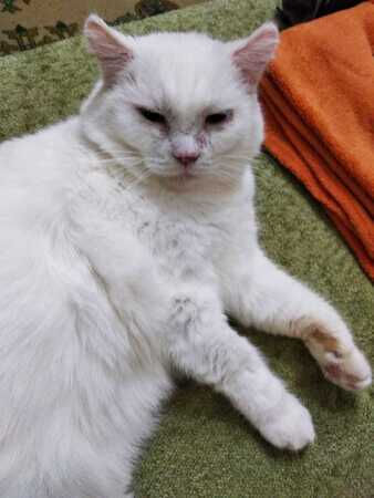 Der liebe Beljasch kam zu mir im Winter 2022, war sehr stark erkältet, ich habe ihn lange behandelt und schlussendlich ging es ihm besser. Vor einem Jahr wurde er von einer sehr katzenlieben Frau adoptiert. So lebt er nun in seinem neuen Zuhause, nicht ganz gesund, aber von seiner Mama über alles geliebt.