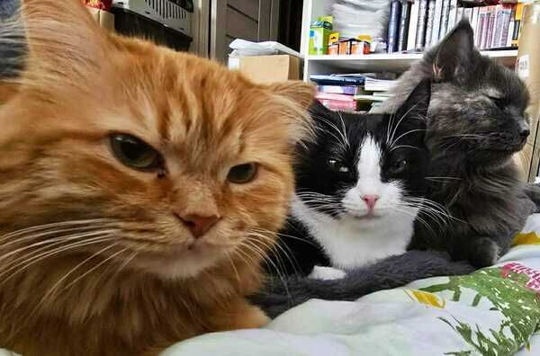 Und diese drei wurden an einem Tag von einer sehr katzenlieben Frau Tatjana adoptiert. Ihre Eltern kommen oft zu mir ins TH, um zu helfen. Tatjanas Mutter hat Katzen besonders gern und verbringt viel Zeit im Katzernhaus. Sie hat Tatjana über die Katzen erzählt und sie wollte einige Katzen zu sich nehmen. Tatjana hatte einen alten Kater, der an Krebs gestoren war. Einige Zeit nach dem Tod des alten Katers ist Tatjana zu mir gekommen und hat Solnyschko, Susi und Waska adoptiert. Solnyschko und Susi haben sich ganz schnell gewöhnt und waren von Anfang an glücklich. Aber Waska, der ins TH als kleines Katerchen gekommen war, brauchte mehr Zeit. Aber er sah die anderen zwei und hat ihnen nachgemacht. Nun sind alle drei überglücklich.